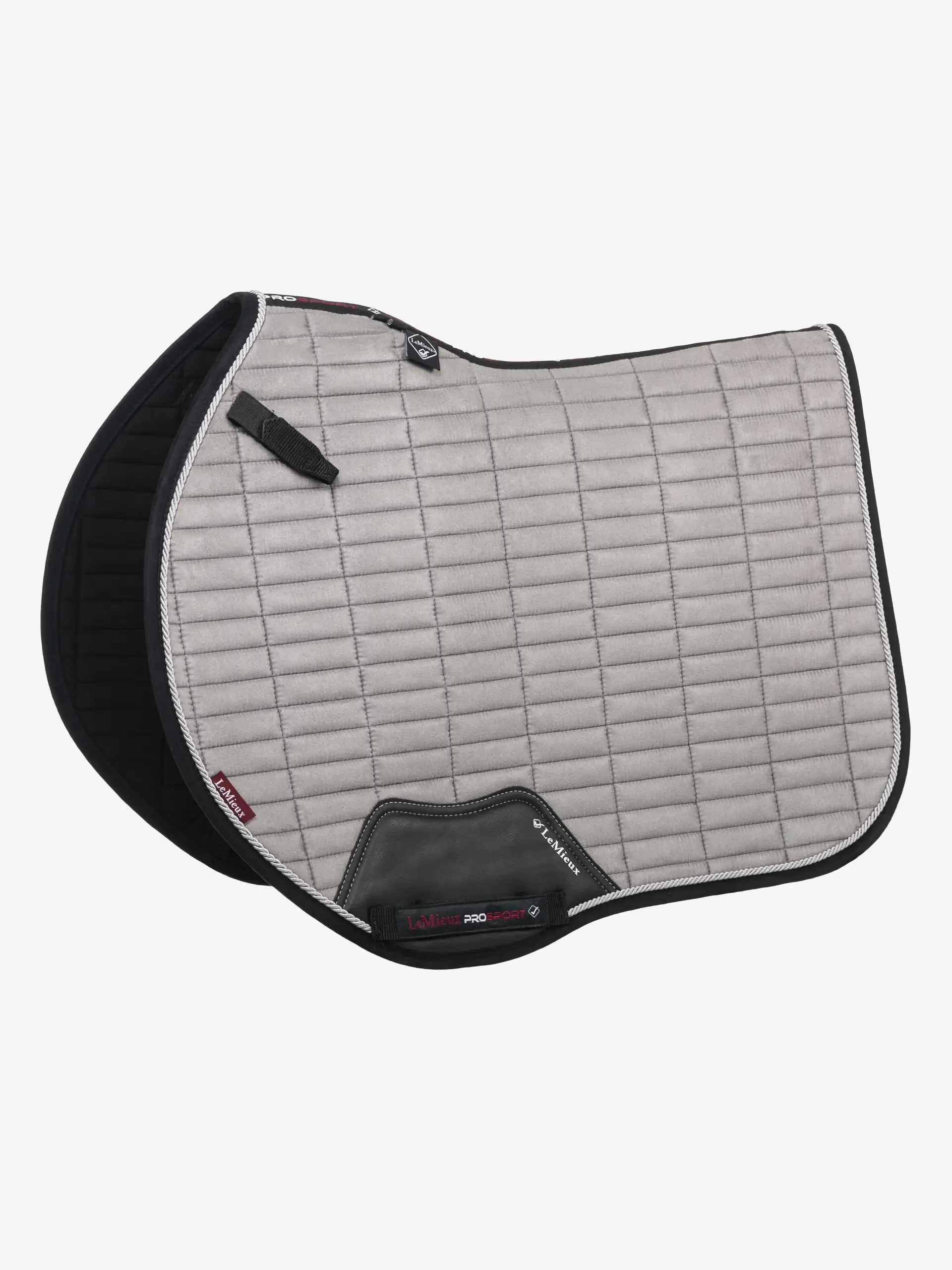 A sleek elongated quilting pattern enhances the pad’s showjumping-oriented design, paired with a luxurious suede-effect outer and coordinating braided trim.